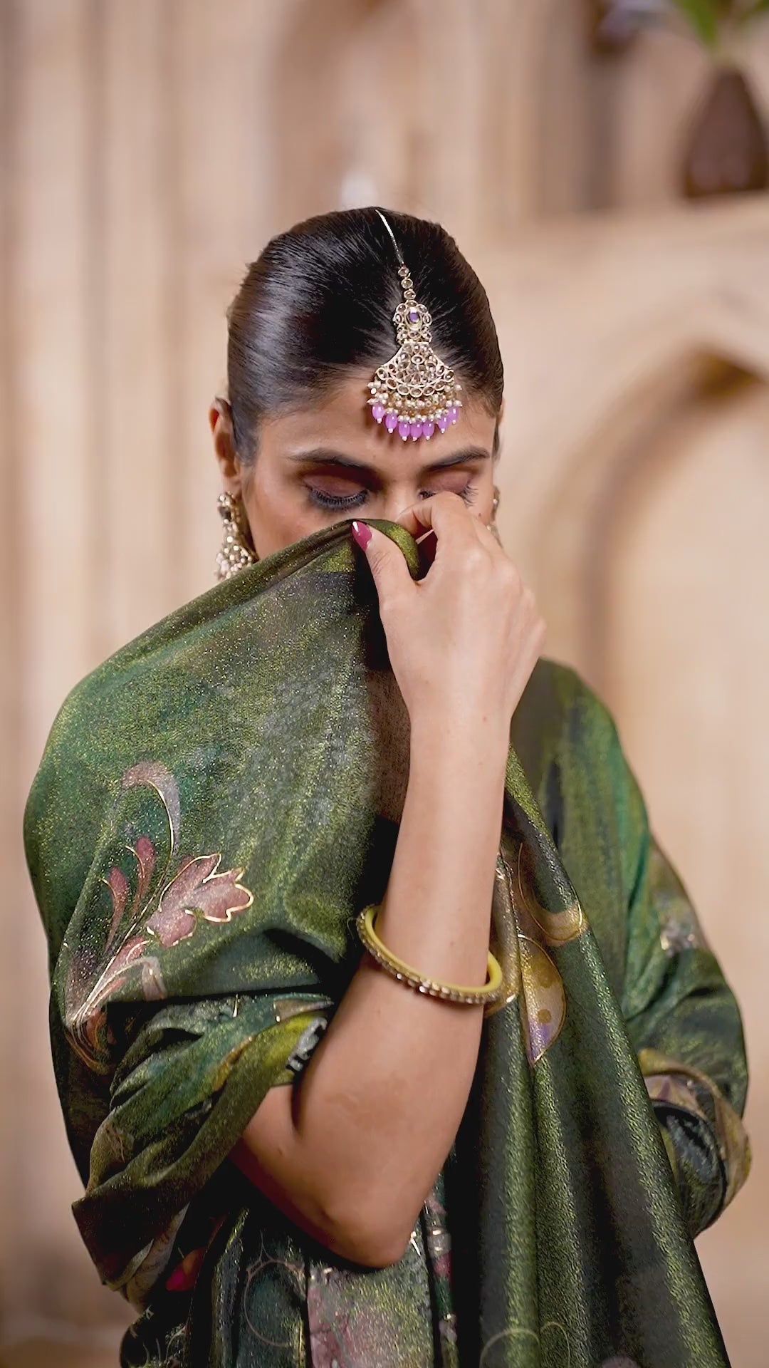 Introducing our Graceful Green Premium Silk Saree Collection – a fusion of modern digital artistry and luxurious tradition. Designed for the woman who values bold elegance with a hint of flair, each saree in this collection features: