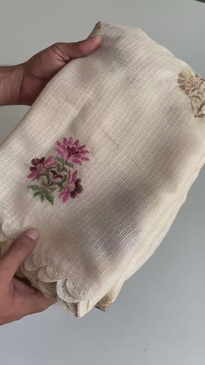 Comes with a scalloped embroidered border, giving the saree a modern and elegant finish